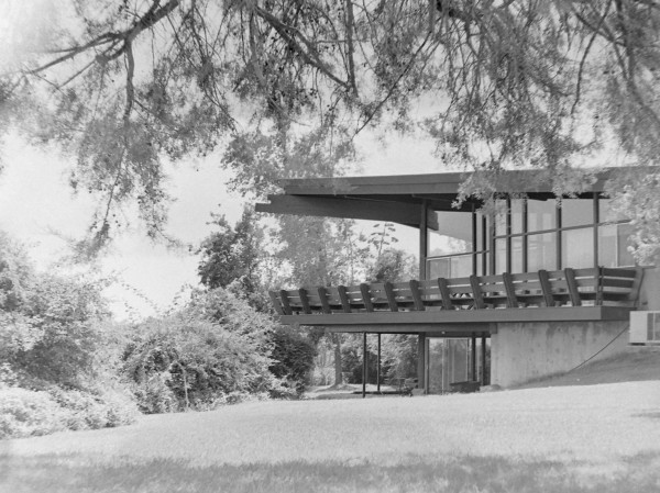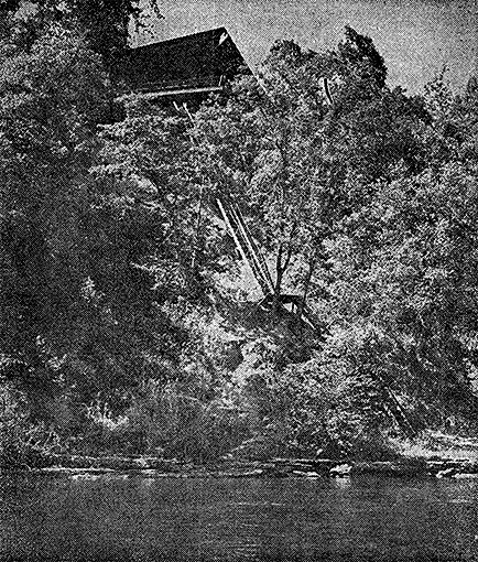 But approaching the home on rural Stanley Avenue, the visitor is completely unprepared for the scope of the Cottrell home. Dense shrubbery hides the river and the front of the house is dominated by an inward sloping fascia, or roof place, giving what Sparks calls “an introverted look.”