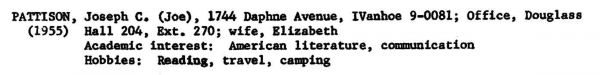 "Dr. Joseph C. Pattison, Assistant Professor of English"
