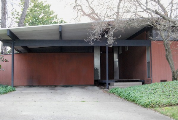 "The house Sparks designed for himself and his family shows what the architect could do when his budget was small. A boxy home with a low, glass-filled gable, the house has open-beams, oddly placed windows, and a simple plank deck overlooking the backyard, which originally had a manmade river.